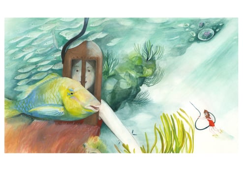 Else B. In the sea ~ meeting a Parrotfish ~ Giclee print
